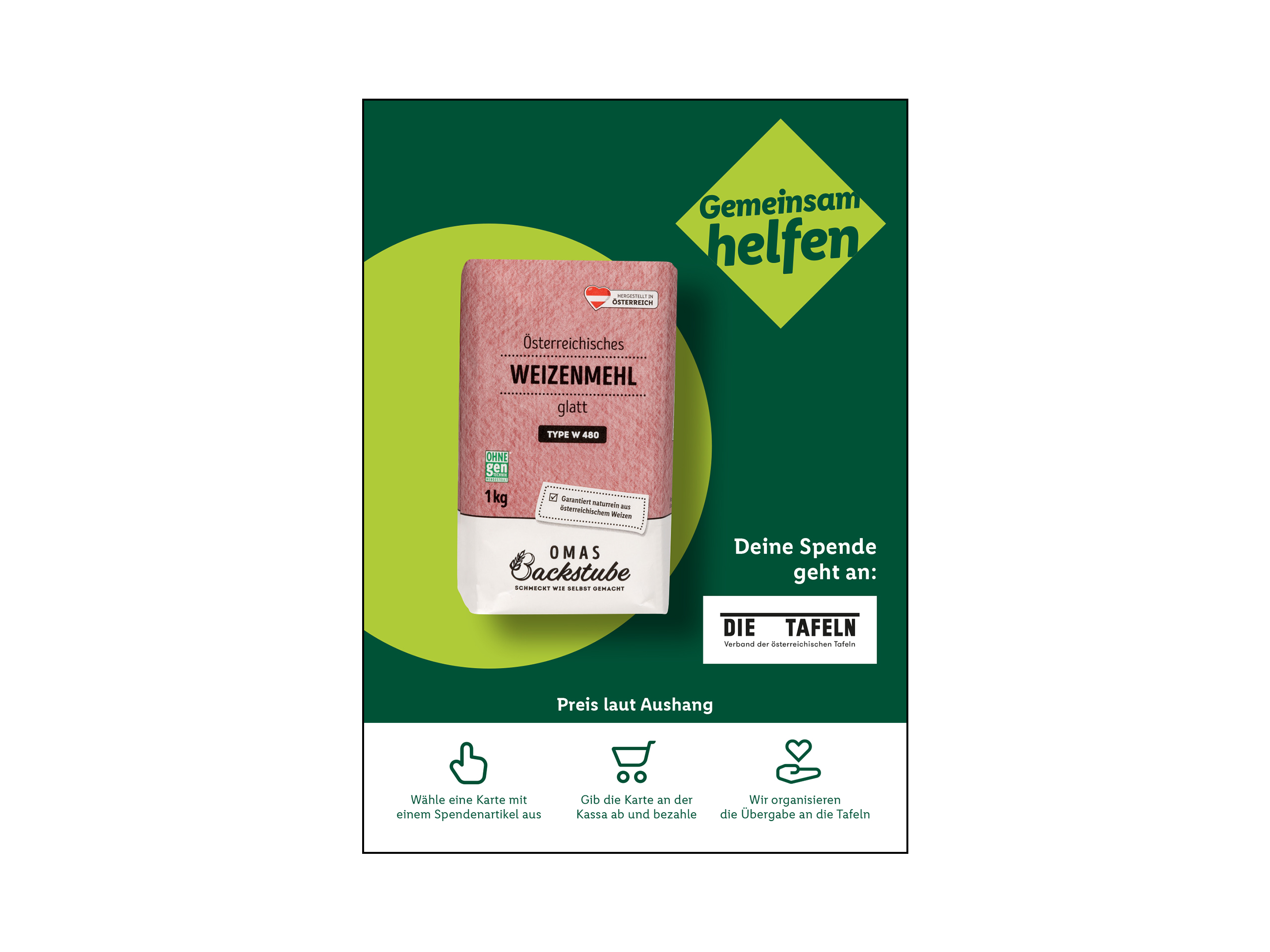 Einkaufen und dabei Gutes tun, geht ganz einfach: Im Kassabereich hängen Spendenkarten für Produkte, die dringend benötigt werden – von Grundnahrungsmitteln bis hin zu Hygieneartikeln. Lidl Kund:innen haben die freie Wahl und legen das gewünschte Kärtchen mit dem Artikel, den sie spenden möchten, einfach auf das Kassaband. Der gespendete Artikel wird automatisch beim Zahlungsvorgang abgerechnet und gespeichert. Nach Abschluss der Aktion übernimmt Lidl Österreich die gesammelte Lieferung aller gespendeten Waren an den Verband der österreichischen Tafeln.